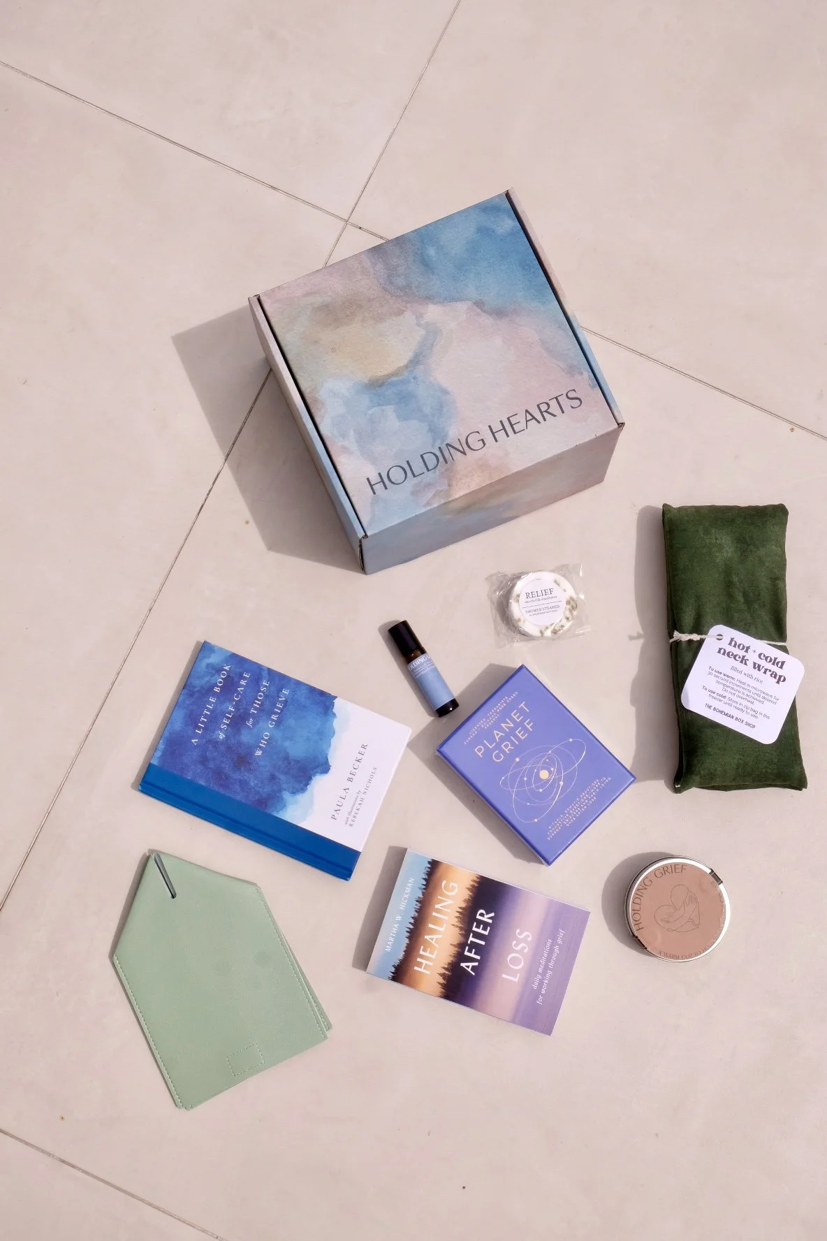 Holding Hearts was created to help people show up therapeutically for the ones they love and bridge the gap between sentiment and true support. The Grief Box is an invitation to slow down, breathe, and be gently held in your own time.